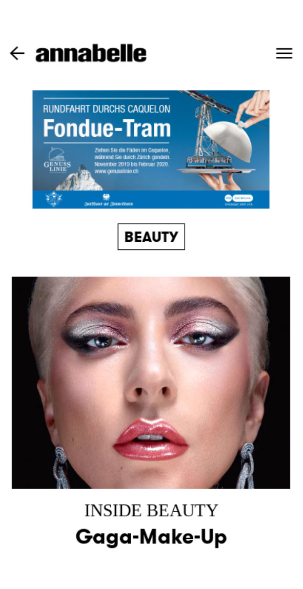 - Les Werbemittel sont testés sur les appareils, les résolutions d’écran et les navigateurs les plus courants. Certains paramètres ou configurations individuels peuvent entraîner des divergences dans l’affichage des Werbemittel.